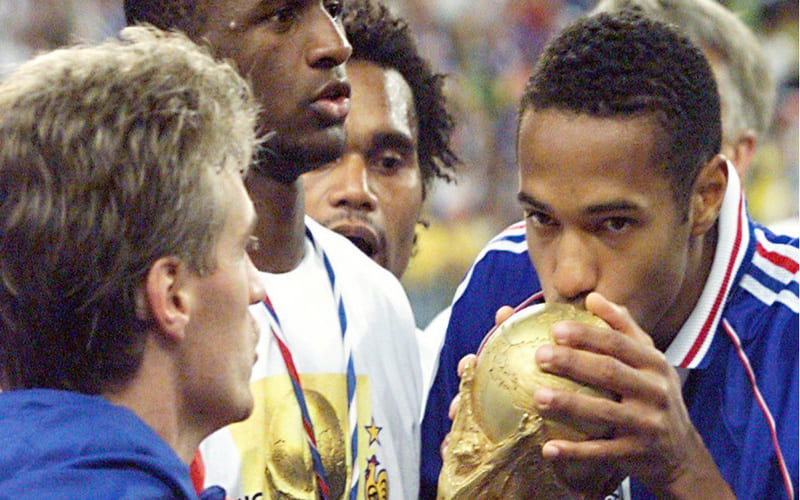 Thierry Henry ra mắt đội tuyển Pháp năm 1997, khi mới 20 tuổi. Số áo Henry trong màu áo đội tuyển Pháp là 21. Với số áo này anh nhanh chóng được gọi vào đội hình tham dự World Cup 1998, giải đấu được tổ chức trên sân nhà. Henry ghi 3 bàn, góp phần giúp Pháp đăng quang chức vô địch thế giới lần đầu tiên trong lịch sử.