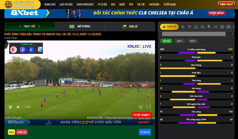 Nền tảng này sử dụng hệ thống máy chủ mạnh mẽ, tối ưu băng thông giúp video phát mượt mà, kể cả trong giờ cao điểm có hàng chục nghìn người xem cùng lúc. Hình ảnh Full HD rõ nét, từng pha đi bóng, từng cú sút đều được hiển thị chân thực như anh em đang ngồi trực tiếp trên khán đài.