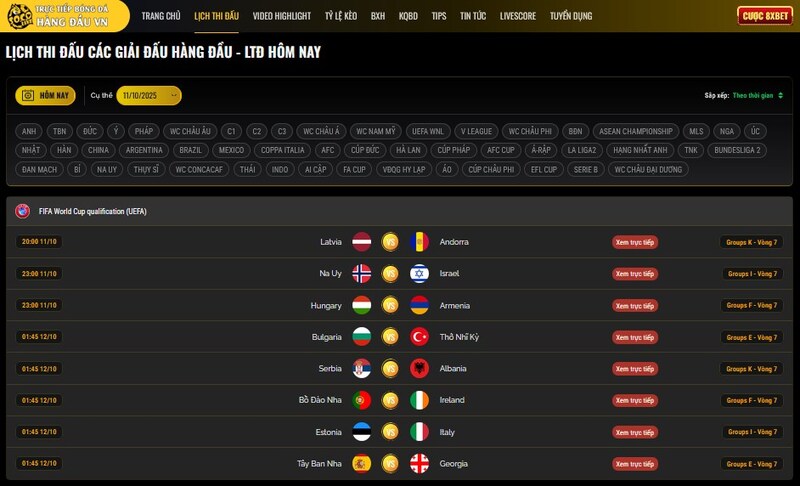 • Xoilac TV – Cập nhật lịch bóng đá hôm nay nhanh nhất, chính xác từng phút