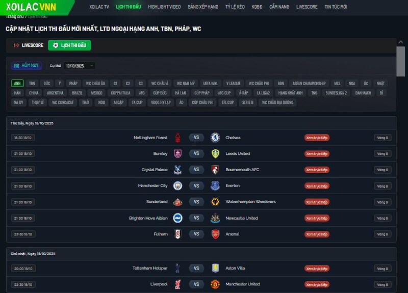 Là một fan trung thành của Premier League, mình cực kỳ quan tâm đến lịch thi đấu ngoại hạng anh. Và điều khiến mình mê Xoi Lac Link hơn cả là chuyên mục lịch thi đấu được cập nhật liên tục, chính xác đến từng phút.